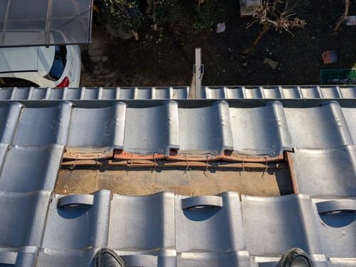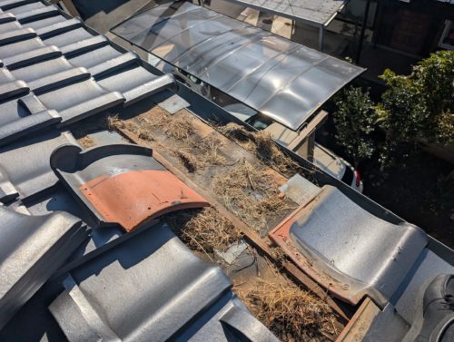 瓦・金属屋根工事 瓦の割れから発覚。鳥害と施工不備を直す屋根修理